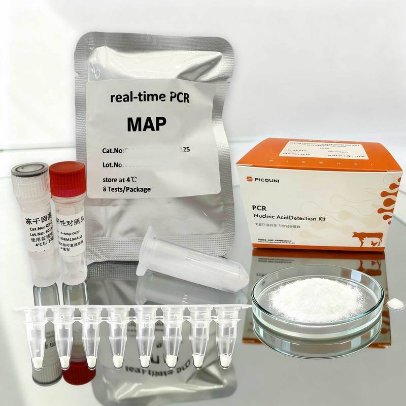 This real-time PCR detection kit (abbreviated as MAP) utilizes bovine paratuberculosis (Mycobacterium avium subsp. Paratuberculosis) specific primers and probes combined with fluorescent PCR technology for in vitro amplification, detection, and clinical diagnosis.